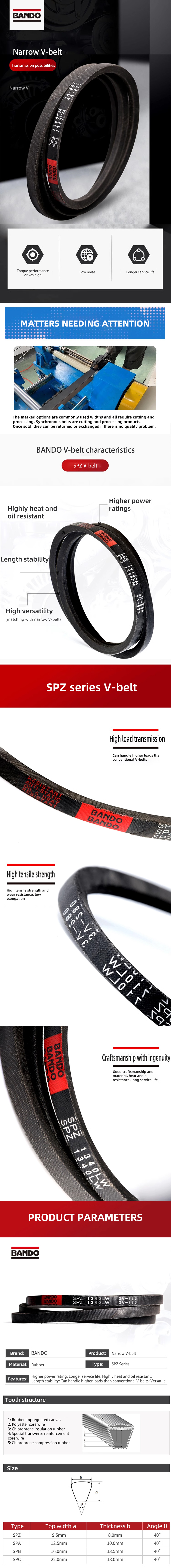 Bando V Belt Spz650lw Spz662 Spz670 Spz687 Narrow V Belt