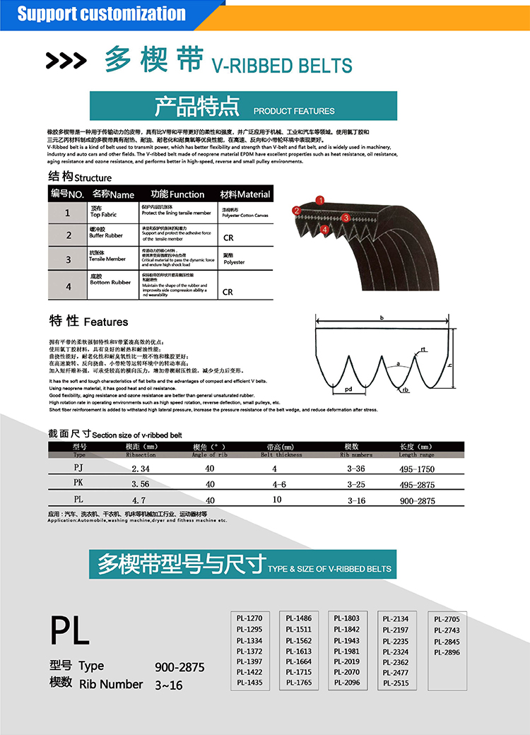 High quality automotive fan belt poly v ribbed belt PJ PK PL for car engine part
