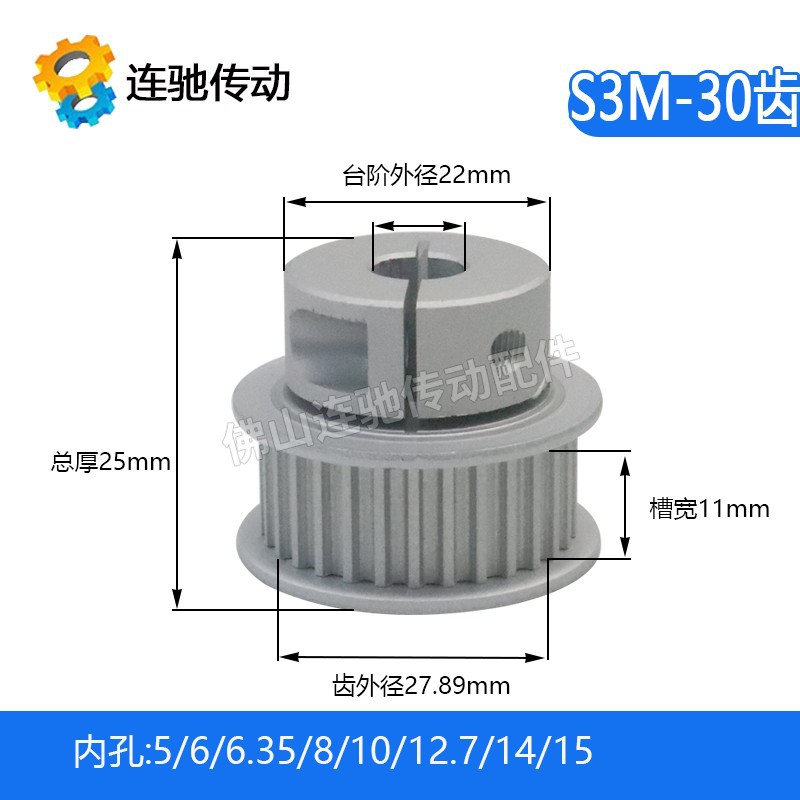 Clamping Type 30TeethS3M—Groove Width11—BF Bore6.35