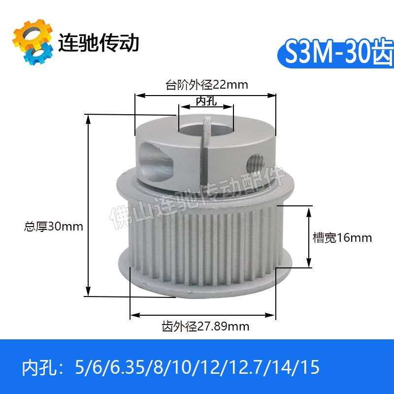 Clamping Type 30TeethS3M—Groove Width16—BBore12.7