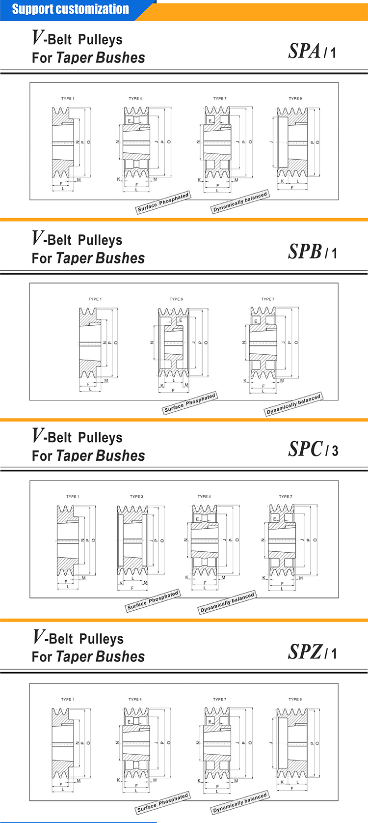 Standard Size SPA SPB SPZ Sheave Wheel Tension double Groove Cast lron Conveyor Motor V belt Pulley with Taper bush Solid Hub