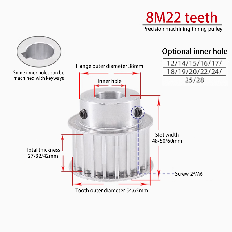 22Teeth—8M—groove width27—B—Bore22Key6