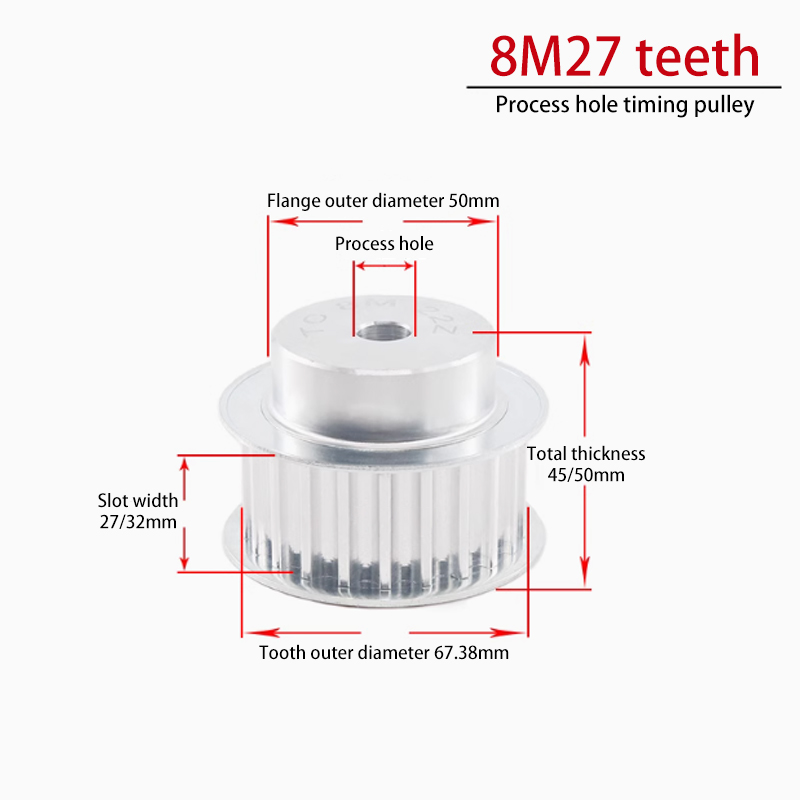 8M 27 Teeth Timing Pulley Aluminum Alloy Inner Bore 8mm teeth Width 32 27mm