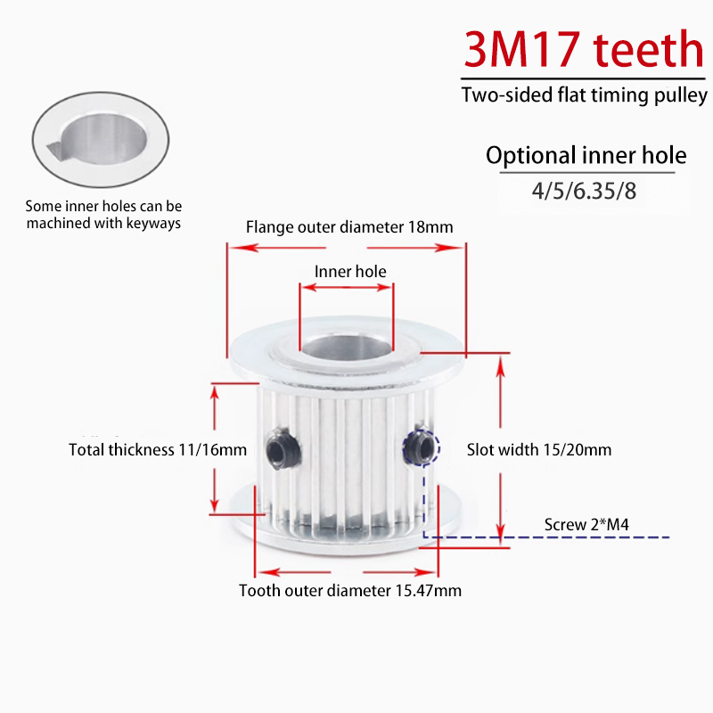 AF 3M 17 Teeth Timing Pulley Width 7mm Bore 4mm/5.6mm/6.35mm/8mm for Industrial Applications