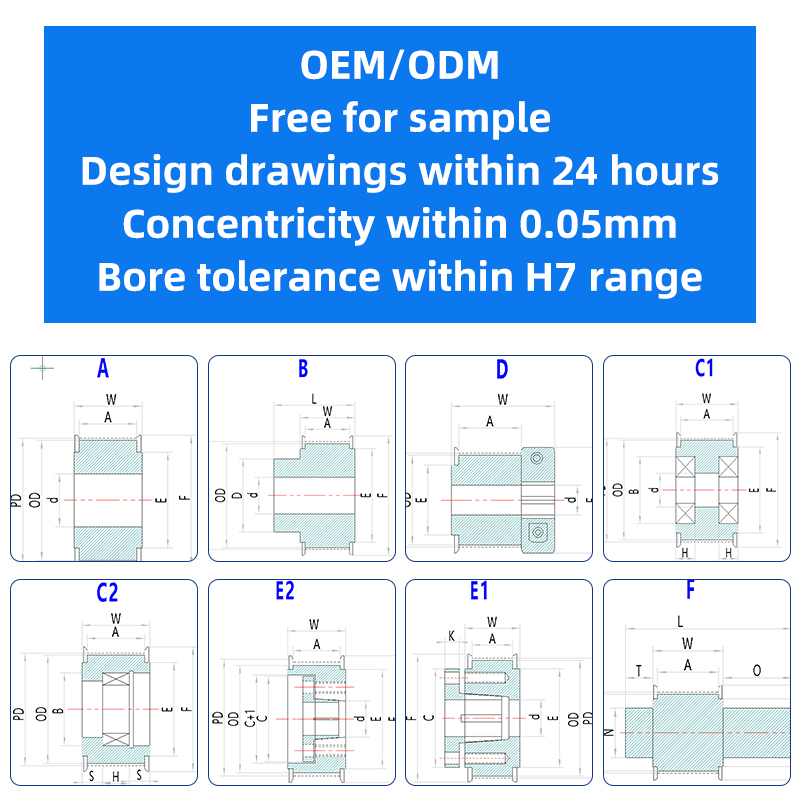 OEM/ODM/NO MOQ/Free for sample/ 48 hours ship out/Design drawings within 24 hours/Concentricity within 0.05mm/Bore tolerance within H7 range