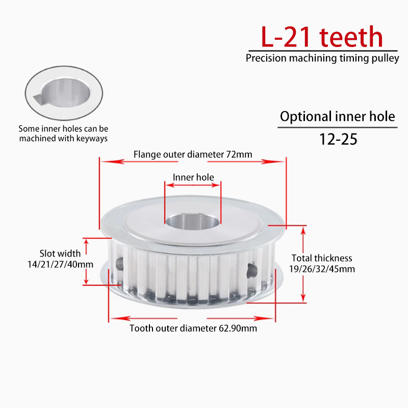 L-AF Type Aluminum Alloy Timing Belt Pulley - 21 Teeth, L050 L075 L100, Double Flat, Anodized