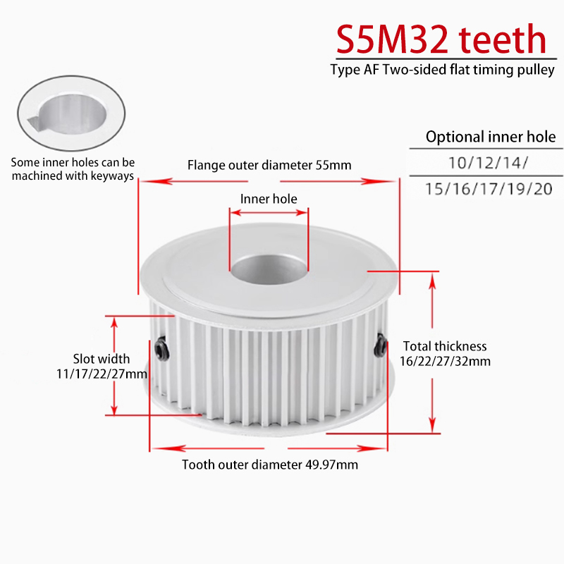 OEM S5M 32 Teeth Dual-Sided Timing Pulley 11 Groove Width AF Aluminum for CNC Applications 32S5M100-A