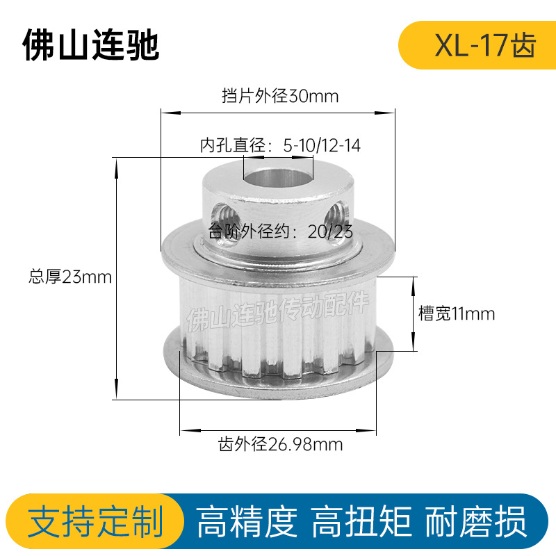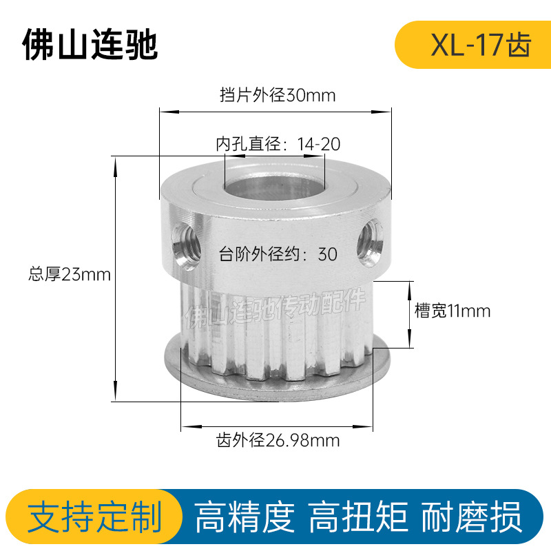 OEM XL 17 Teeth Timing Pulley Inner Bore 5/6/6.35/8 with Set Screws