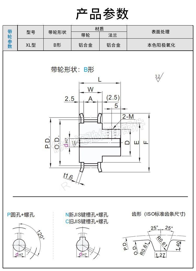 Wholesale XL 22 Teeth Aluminum Oxidized Timing Pulley Groove Width EAF51-XL050-22-B-N-D14
