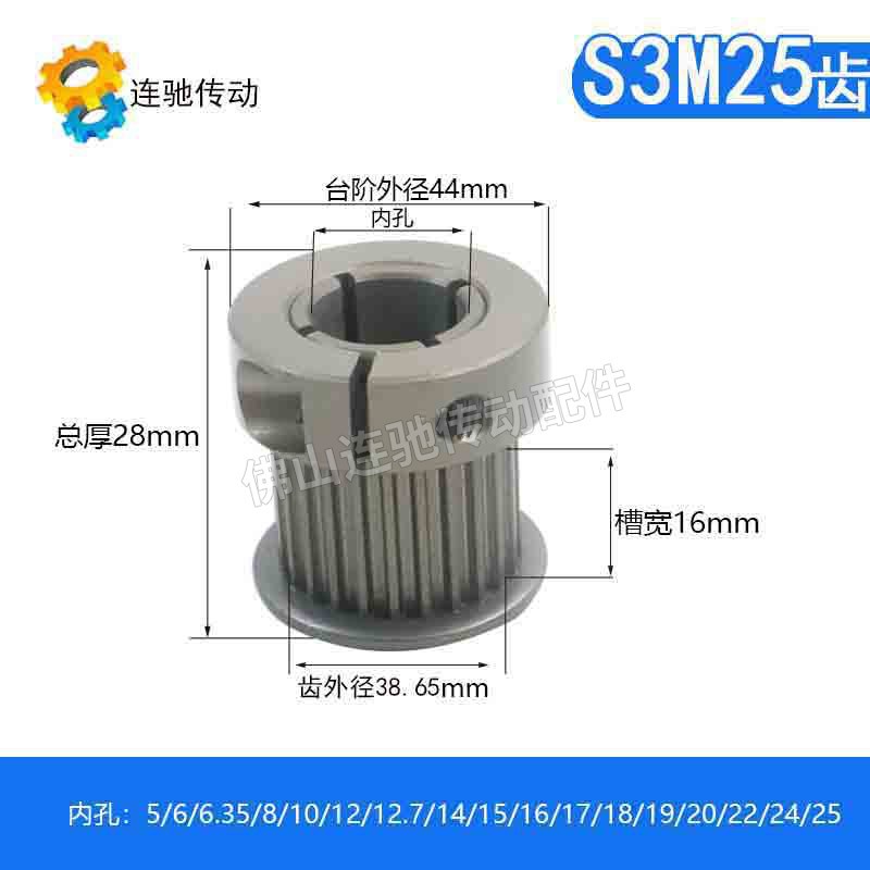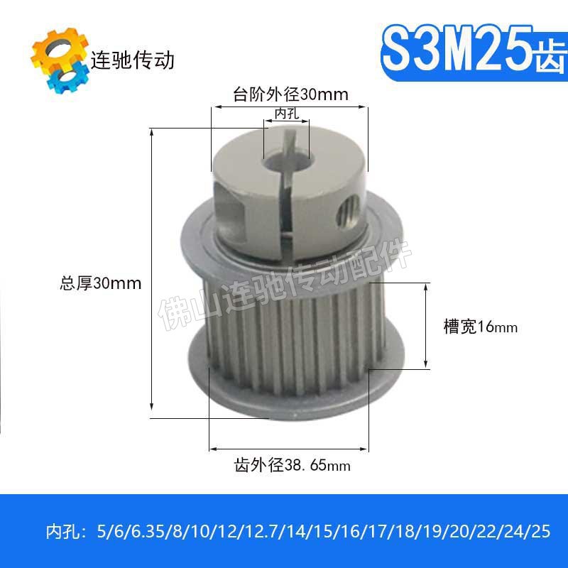 Clamping Type 25TeethS3M—Groove Width16—K—Bore12.7