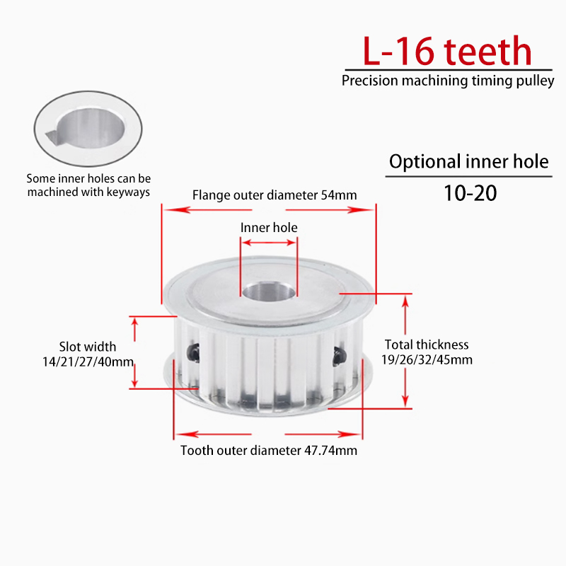 Support Customization L-AF Type 16 Teeth Timing Belt Pulley - L050 L075 L100 - AF Type Double Flat - Aluminum Alloy Anodized