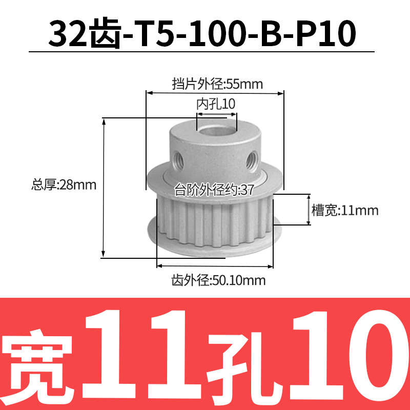 T5-32 Teeth Timing Pulley with Boss Groove Width 11/17 | Anodized Aluminum Alloy Pulley